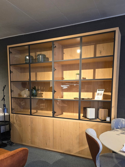 Drift vitrine kast eiken 220 cm met metalen deuren- Showmodelaanbieding _ Oock en Note