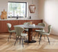 De Steely eivormige eettafel van Bree’s New World combineert een organisch, asymmetrisch tafelblad met een stevig en elegant onderstel. Het eivormige blad geeft de tafel een zachte, uitnodigende uitstraling en zorgt dat elke Steely een uniek accent in de ruimte is. Het centrale cilinderonderstel met ronde voetplaat biedt optimale stabiliteit en veel beenruimte, terwijl het visueel licht blijft.